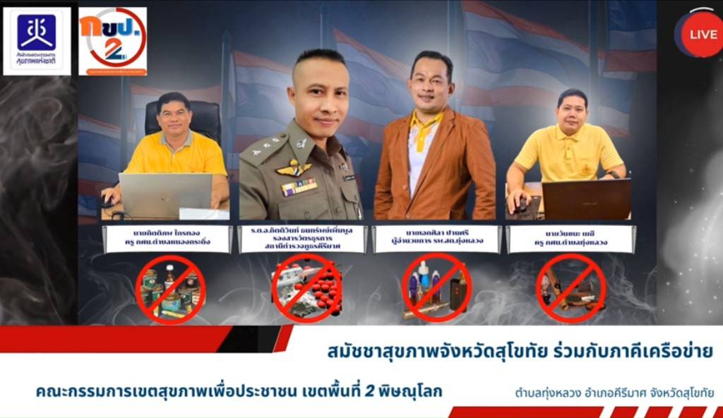 กขป.เขต 2 ร่วมกับ สมัชชาสุขภาพ จ.สุโขทัยและภาคีเครือข่ายในพื้นที่ขับเคลื่อนนโยบายสาธารณะประเด็นปัญหาสุขภาพตามกลุ่มวัยเพื่อแก้ปัญหาบุหรี่ไฟฟ้าในกลุ่มเยาวชนผ่านกระบวนการสมัชชาสุขภาพ จังหวัดสุโขทัย