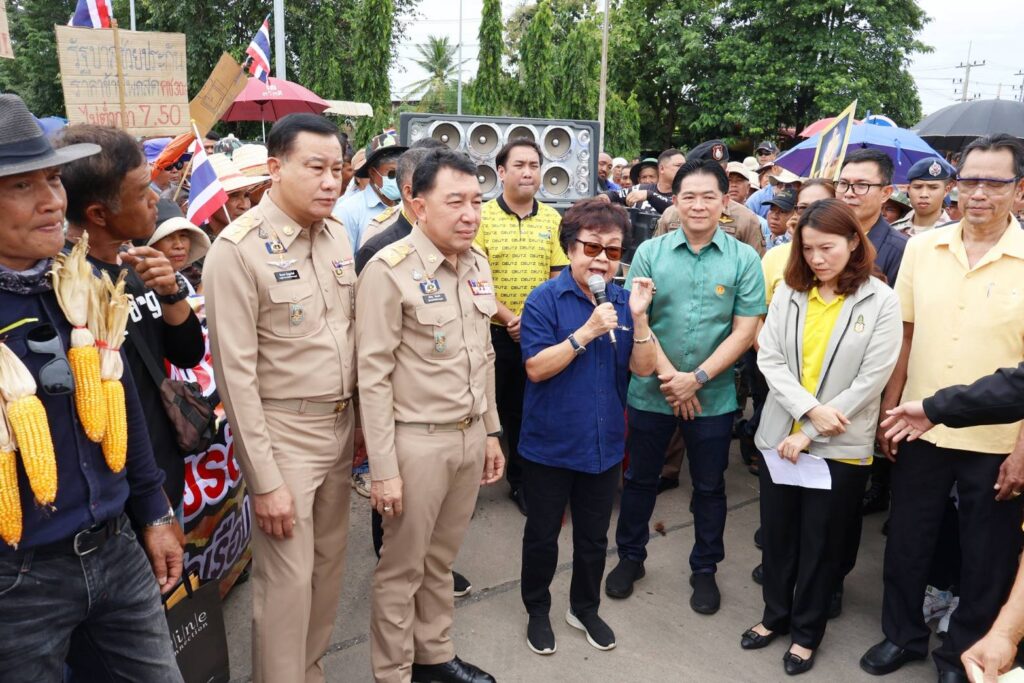 ต่อมา เวลา 11.00 น. นายศรัณยู มีทองคำ ผู้ว่าราชการจังหวัดเพชรบูรณ์ พร้อมด้วย นายสืบพงษ์ นิ่มพูลสวัสดิ์ รองผู้ว่าราชการจังหวัด, นางวันเพ็ญ พร้อมพัฒน์ ส.ส.เพชรบูรณ์ เขต 5, นายบุญชัย กิตติธาราทรัพย์ ส.ส.เขต 3 และนางสาวพิมพ์พร พรพฤฒิพันธ์ ส.ส.เขต 1 พร้อมหัวหน้าส่วนราชการที่เกี่ยวข้อง ได้ลงพื้นที่รับฟังปัญหาและรับหนังสือข้อเรียกร้องจากตัวแทนเกษตรกร