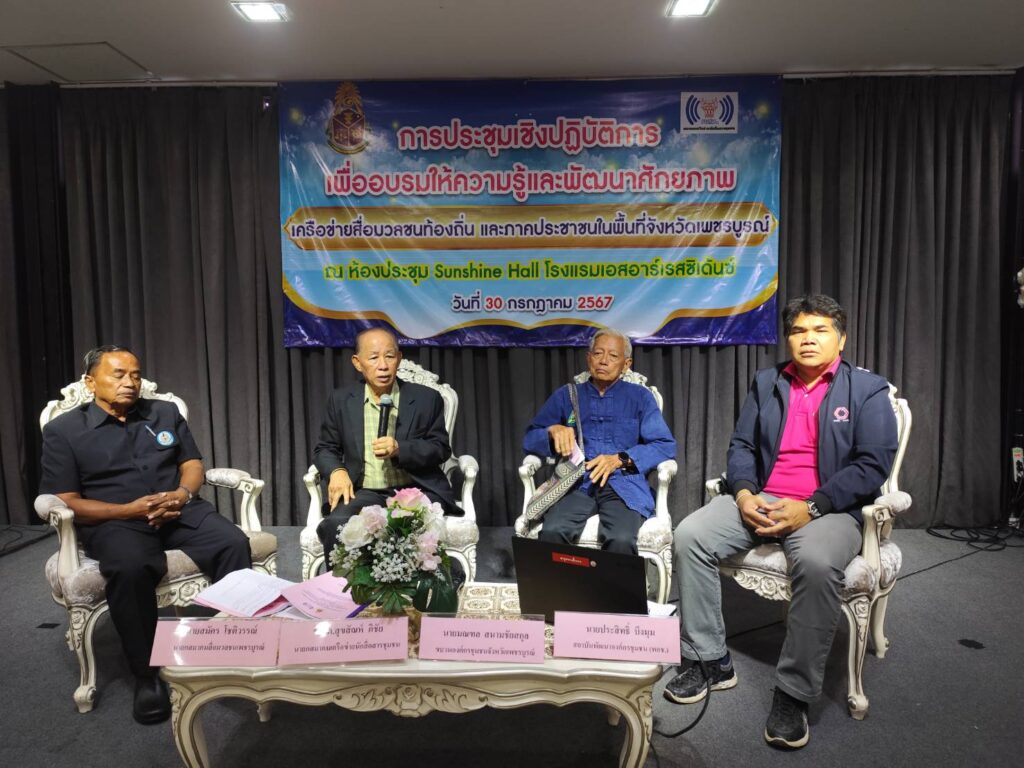 เมื่อวันที่ 30 กรกฎาคม 2567 เวลา 09.00 น ที่ห้องประชุม Sunshine Hall โรงแรมเอสอาร์เรสซิเด้นซ์ อำเภอเมือง จังหวัดเพชรบูรณ์นายกฤษณ์ คงเมือง ผู้ว่าราชการจังหวัดเพชรบูรณ์ มอบหมายให้ นายสมพงษ์ ทองหนูนุ้ย นายอำเภอเมืองเพชรบูรณ์ เป็นประธานเปิดงานการประชุมเชิงปฏิบัติการเพื่ออบรมให้ความรู้และพัฒนาศักยภาพ เครือข่ายสื่อมวลชนท้องถิ่นและภาคประชาชนในพื้นที่ โดยมีนางนุชจรินทร์ อินประถม ผอ.ปปช.ประจำจังหวัดเพชรบูรณ์ นายดิเรก ยศคชรัตน์ ผอ.สวท.เพชรบูรณ์ พร้อมด้วยคณะสื่อมวลชนท้องถิ่นและภาคประชนจากสภาองค์กรชุมชนตำบลในพื้นที่ร่วมงาน