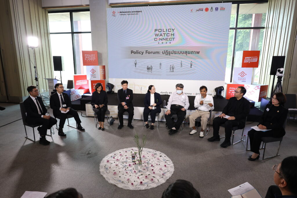 เวที “Policy Forum: ปฏิรูประบบสุขภาพ” ภายใต้กิจกรรม “Policy Watch Connect 2026” เลือกตั้ง 69 นโยบายสาธารณะ ฝ่าวิกฤตประเทศ ซึ่งสำนักงานคณะกรรมการสุขภาพแห่งชาติ (สช.) ร่วมกับองค์การกระจายเสียงและแพร่ภาพสาธารณะแห่งประเทศไทย (Thai PBS) วุฒิสภา สถาบันพระปกเกล้า สำนักงานกองทุนสนับสนุนการสร้างเสริมสุขภาพ (สสส.) และองค์กรภาคีเครือข่ายกว่า 40 องค์กร จัดขึ้น เมื่อวันที่ 16 ม.ค. 2569 มีข้อเสนอถึงพรรคการเมืองและว่าที่รัฐบาลในการปฏิรูปสุขภาพ ผ่านมุมมองของภาควิชาชีพ ภาควิชาการ ภาคท้องถิ่น ภาคราชการ ภาคการเมือง ตลอดจนภาคประชาชน