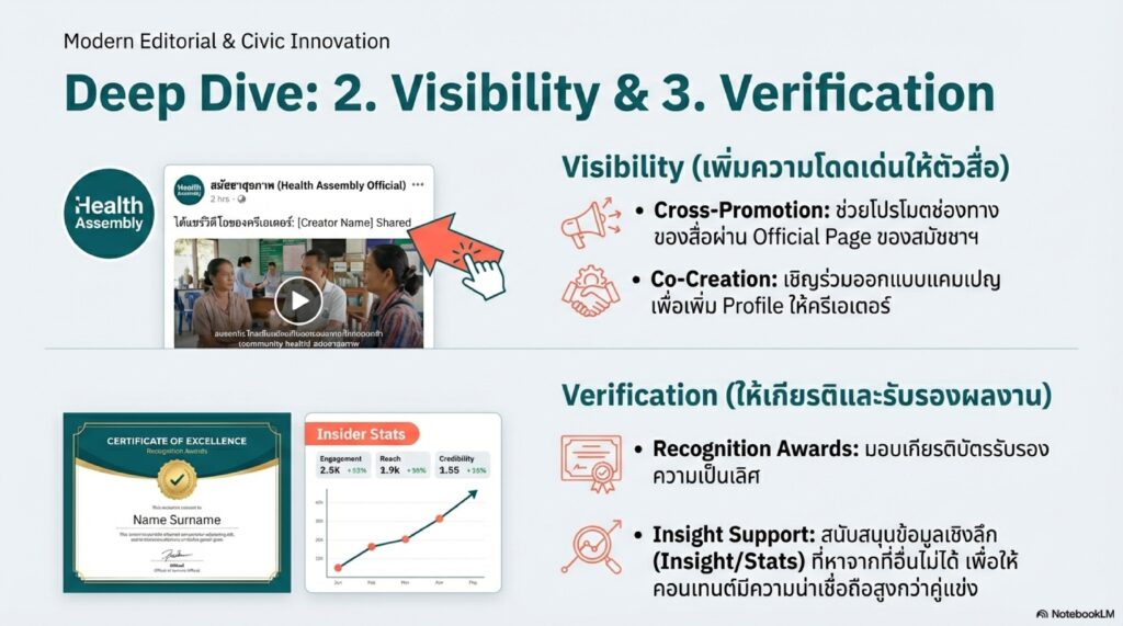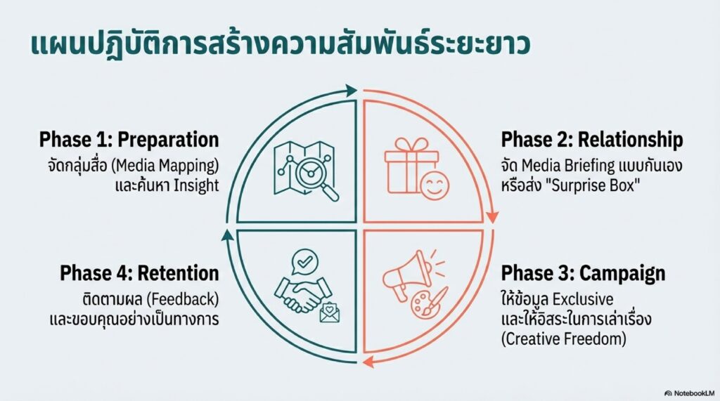 * สร้างเครือข่ายที่ยั่งยืน: เน้นการสร้างพันธมิตรผู้ผลิตสื่อในระยะยาว (Brand Advocate) ที่มีความเชื่อและความเข้าใจในประเด็นสุขภาพ มากกว่าการจ้างผลิตสื่อแบบครั้งเดียวจบ