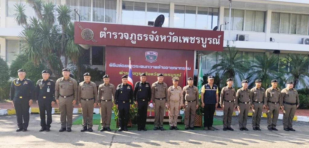 ฝ่าย ทหารประกอบด้วย กองพลทหารม้าที่ 1 จำนวน 10 นาย มณฑลทหารบกที่ 36 จำนวน 10 นายและ กองอำนวยการรักษาความ มั่นคงภายในจังหวัดเพชรบูรณ์ฝ่ายปกครองประกอบด้วย พล กองร้อยอาสารักษาดินแดน จำนวน 10 นาย และอาสาสมัครตำรวจบ้าน จำนนวน 20 นาย เข้าร่วมพิธีปล่อยแถวระดมกวาดล้างอาชญากรรม กันอย่างพร้อมเพียง ณ บริเวณหน้าอาคารที่ทำการ ตำรวจภูธรจังหวัดเพชรบูรณ์